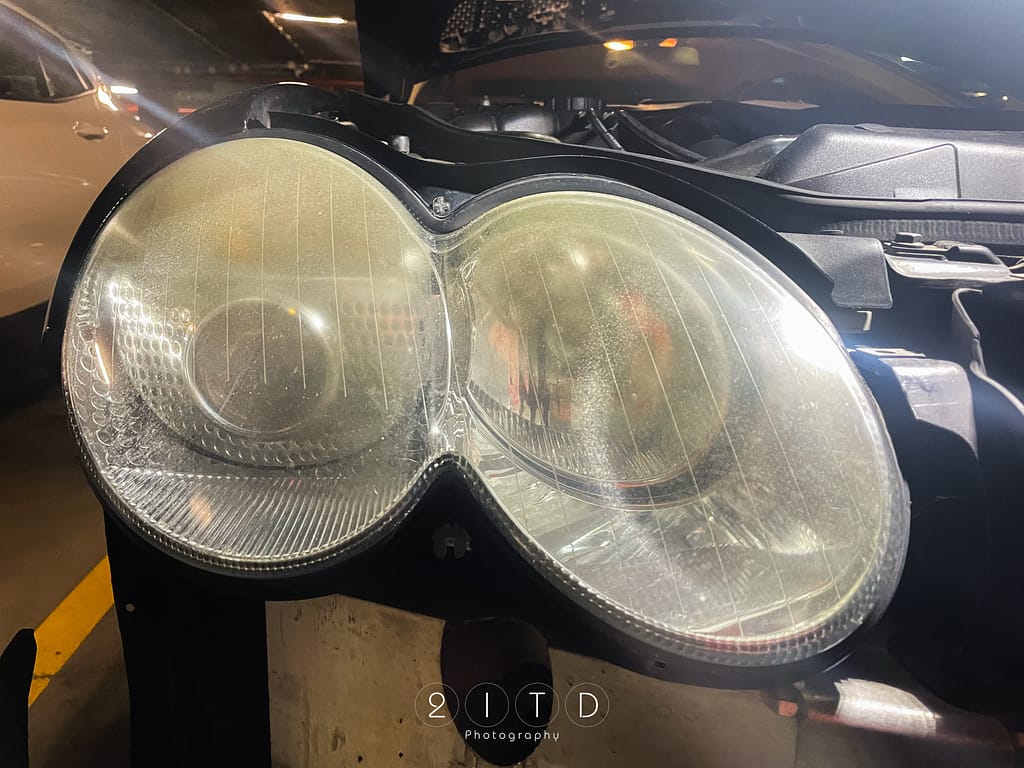 Właśnie skończyłem odnawiać reflektory w SL500 — lekki szlif papierem ściernym o gradacji 2000 i „Fx Spray Headlight Restoration Kit” (efekt po 30 min widać na wideo). 🔥