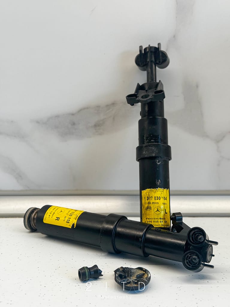 Lampy wstępnie odnowione ale niestety… system spryskiwaczy reflektorów przestał działać. 😔